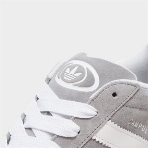Das Modell Campus 00s ist ein Lifestyle-Sneaker mit einem Schaft aus hochwertigem Wildleder in Graufarbe. Die Konstruktion wird durch weiße Three Stripes Bänder und das Markenlogo ergänzt.