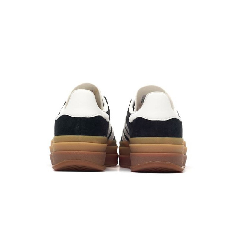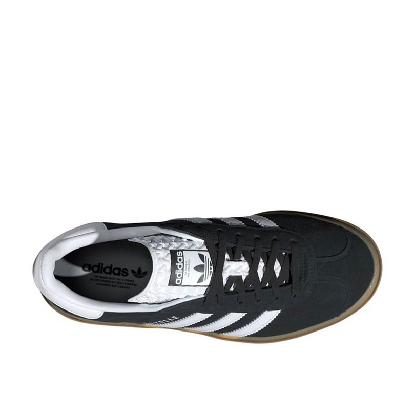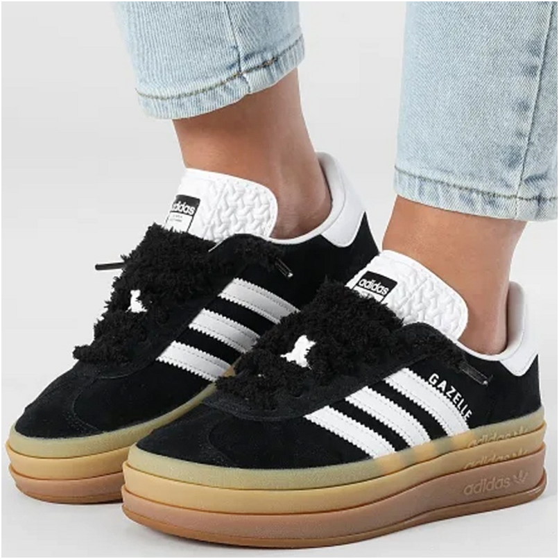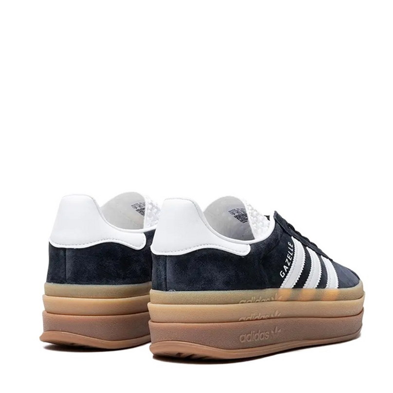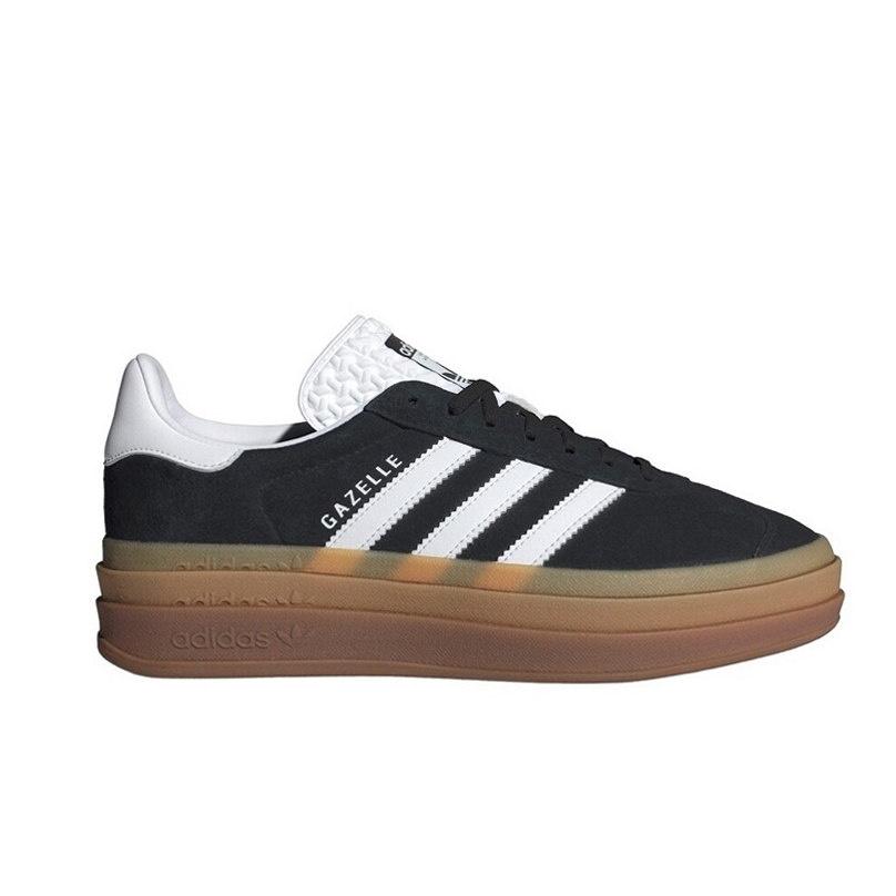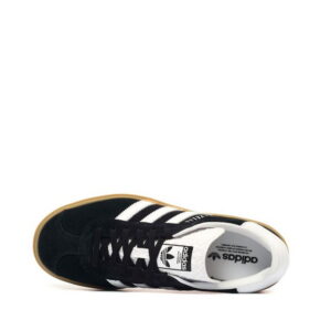 Das Modell Gazelle Bold W ist ein Lifestyle-Sneaker mit Obermaterial aus Naturwildleder in der Farbgebung Black/White mit kontrastierenden Seitenbändern. Low-Top-Konstruktion mit charakteristischem Gazelle- und Trefoil-Logo.