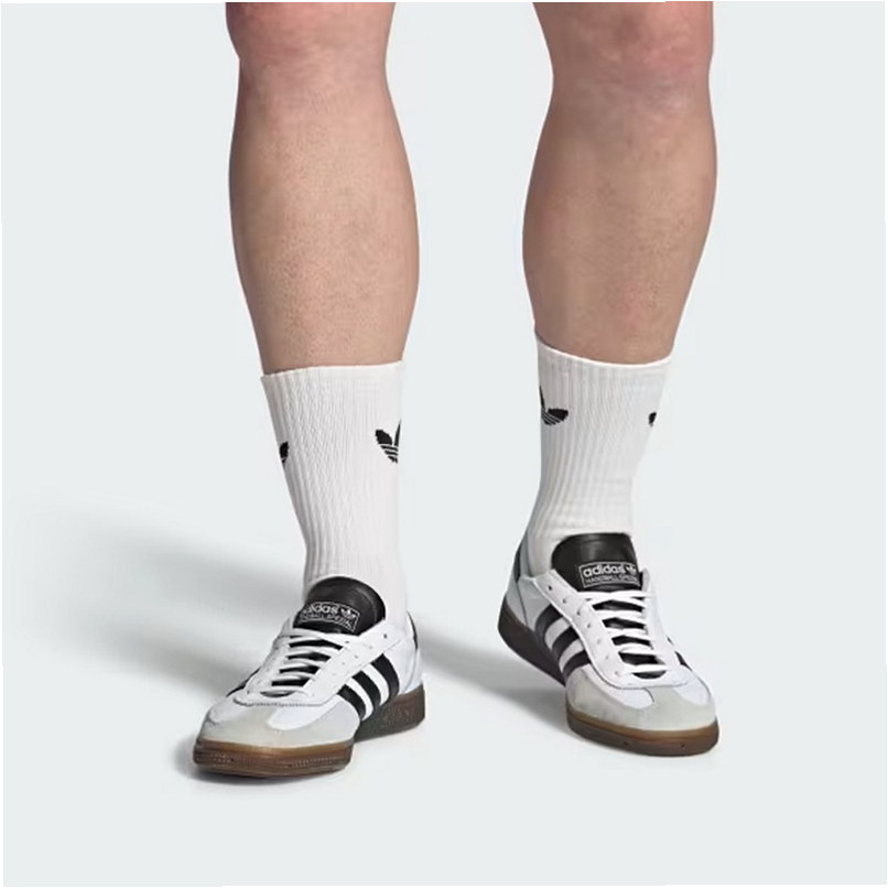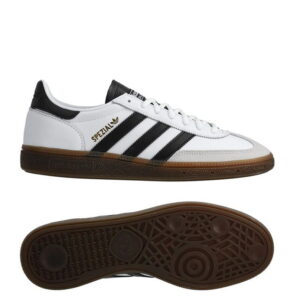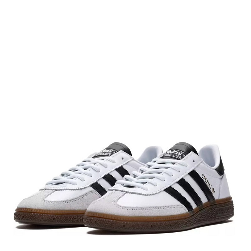 Das Modell Handball Spezial ist ein Sportschuh mit Schaftwerk aus Naturleder in weißer Farbgebung. Low-Top-Konstruktion inspiriert vom klassischen Sportstil mit Schnürung als Verschlusssystem.