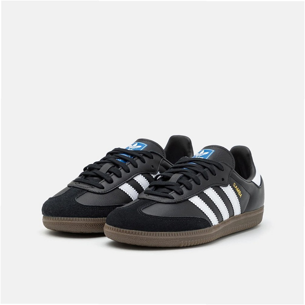 Das Modell Samba OG ist ein Casual-Sneaker mit Obermaterial aus Naturleder mit Wildledereinsätzen in der Farbgebung Black. Low-Top-Konstruktion mit charakteristischen drei seitlichen Streifen.