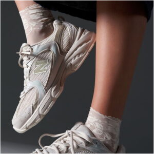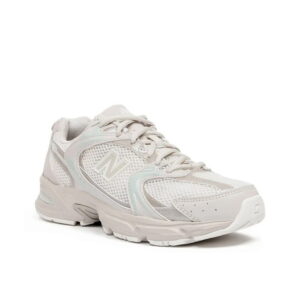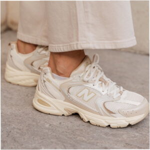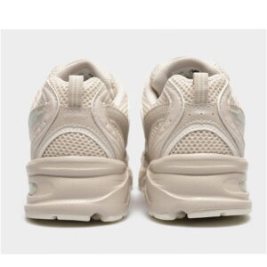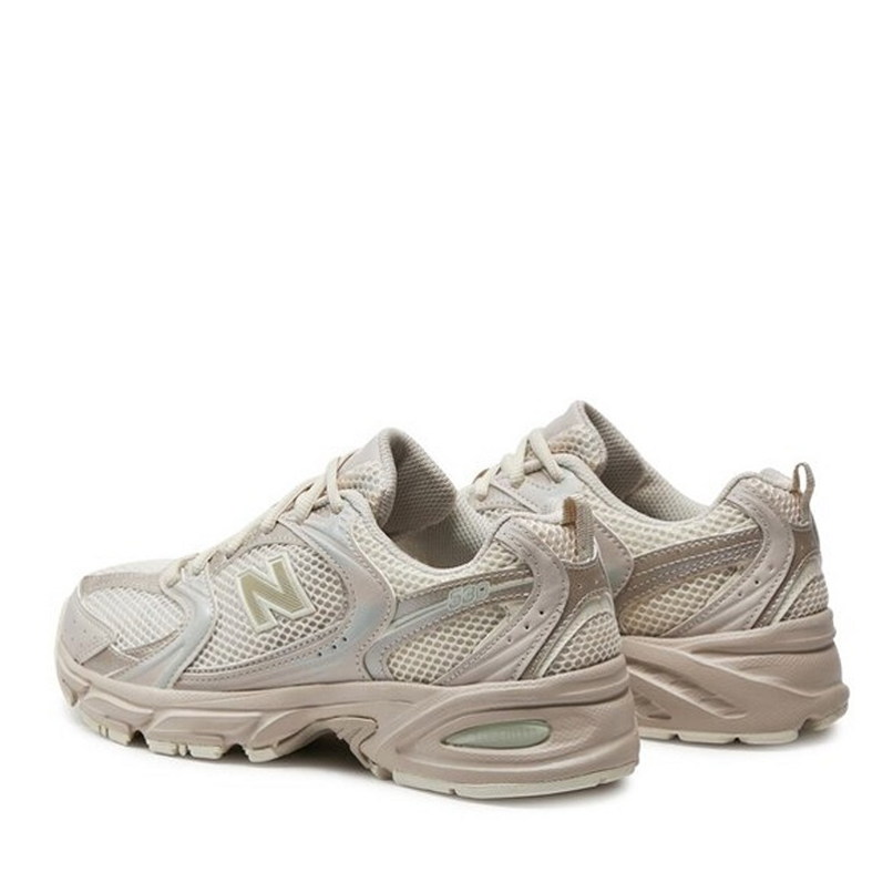 Das Modell 530 ist ein Retro-Running-Sneaker mit Obermaterial aus atmungsaktivem Mesh-Gewebe und Overlays aus synthetischem Leder in neutraler Beige-Farbgebung. Die von Laufschuhen aus den 90er Jahren inspirierte Konstruktion zeichnet sich durch eine schlanke Silhouette aus.