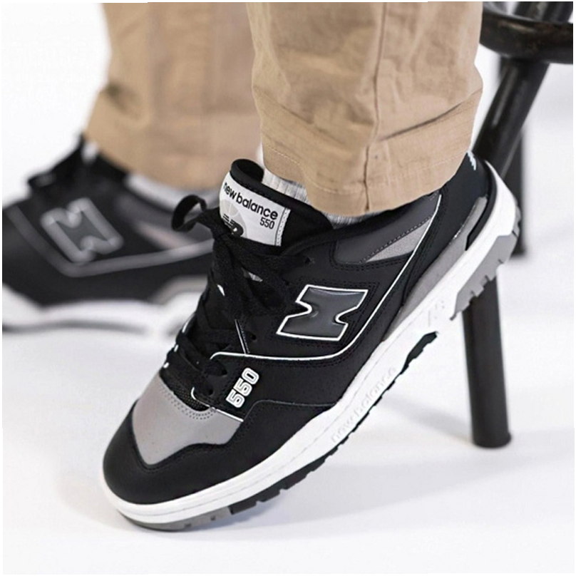 Das Modell 550 ist ein Lifestyle-Laufschuh mit Schaftkombination aus Naturleder und Synthetik, inspiriert vom klassischen Basketballdesign der 1980er Jahre. Die Konstruktion verfügt über das charakteristische New Balance Logo auf den Seiten und der Zunge.