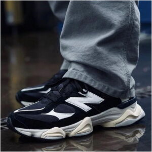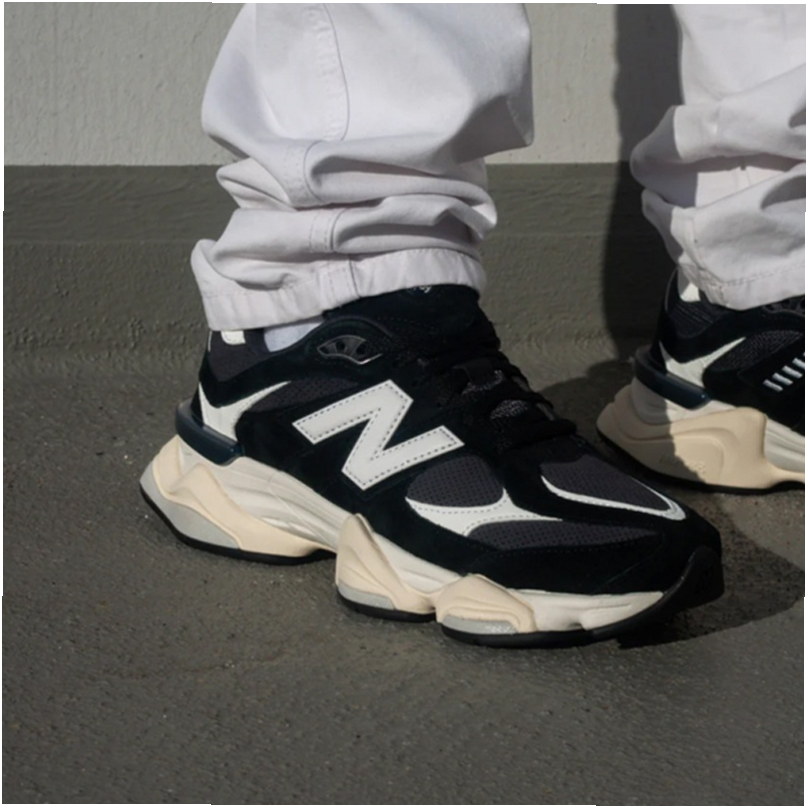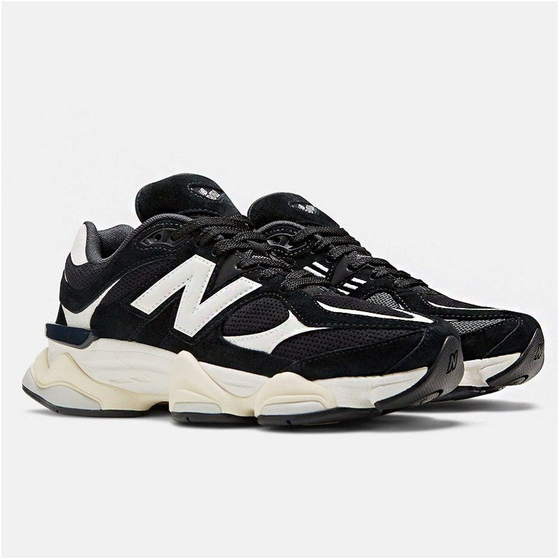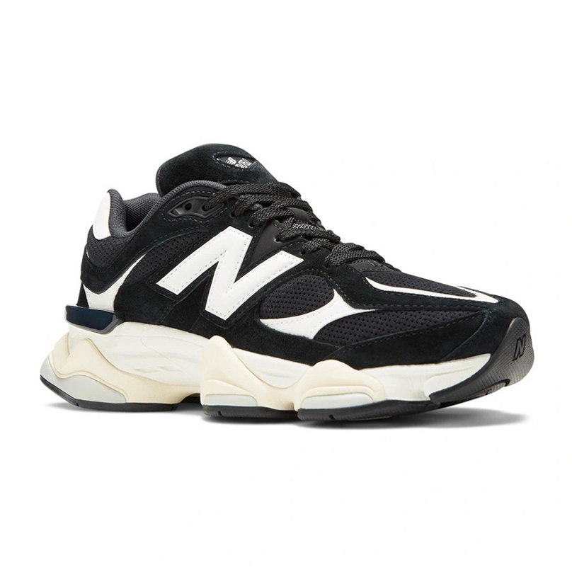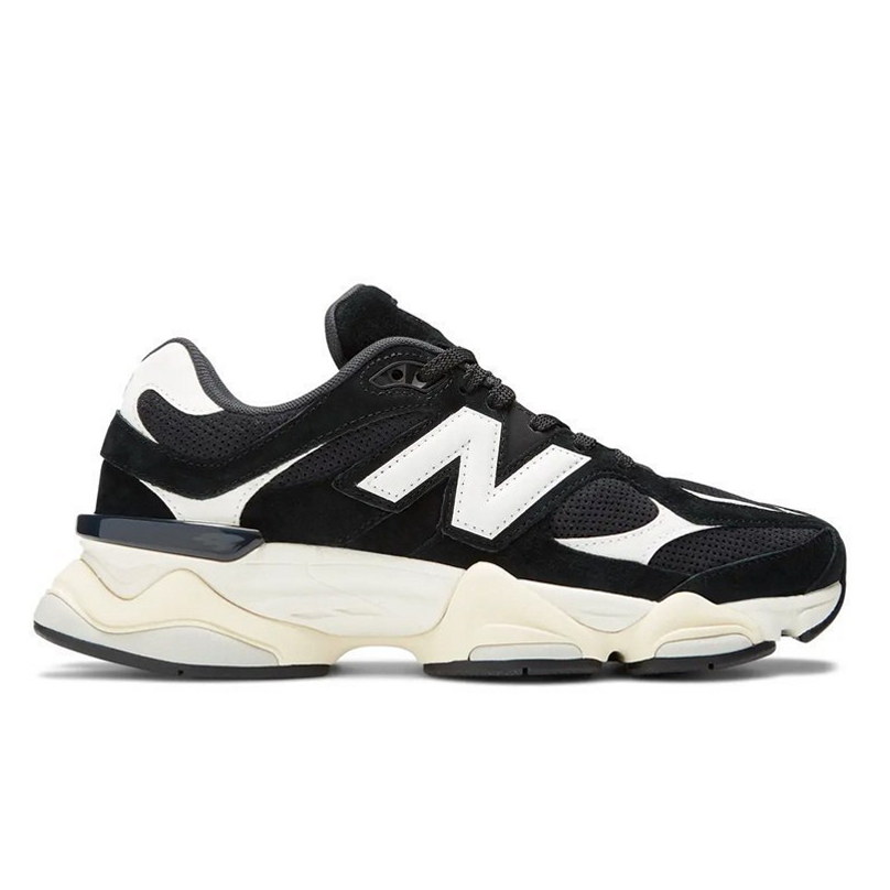 Das Modell 9060 ist ein Lifestyle-Sneaker mit Obermaterial aus Mesh-Gewebe und Wildlederpaneelen in der Farbgebung Black/White. Low-Top-Konstruktion mit kontrastierendem Finish, inspiriert vom Stil der 2000er Jahre.
