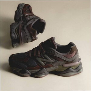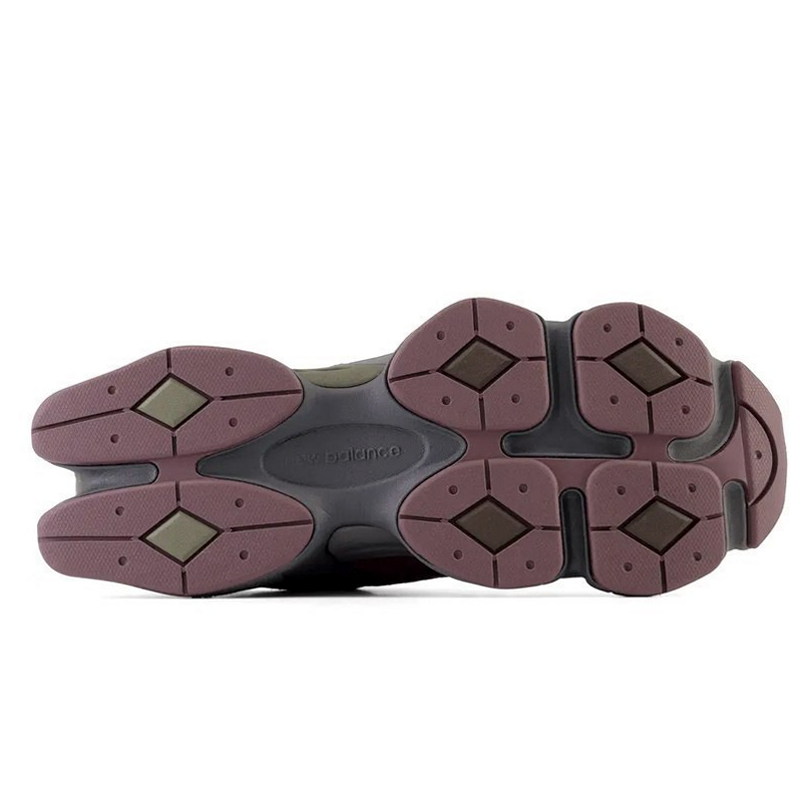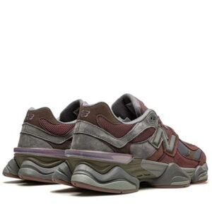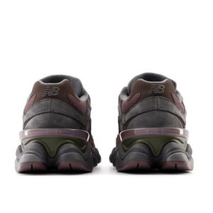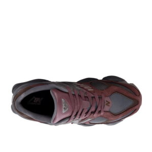 Das Modell 9060 ist ein unisex Laufschuh mit Schaft aus synthetischen und textilen Materialien in Bordeauxrot mit grauen Elementen. Die Konstruktion ist für den täglichen Gebrauch konzipiert.