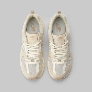 Die New Balance GR530AA Sneakers präsentieren klassisches Design in dezenter beiger Farbgebung. Das Modell kombiniert Kunstleder mit Textilmaterial und schafft eine funktionale Konstruktion mit Retro-Charakter. Der universelle Charakter sorgt dafür, dass sich der Schuh verschiedensten Stylings anpasst.