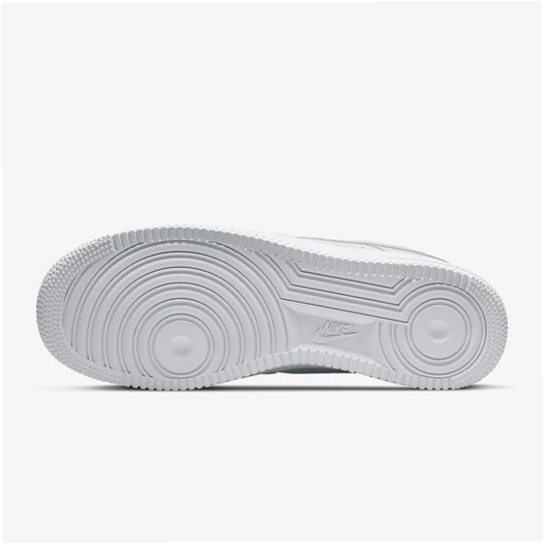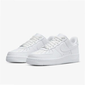 Das Modell Air Force 1 ’07 ist ein Lifestyle-Sneaker mit Obermaterial aus Naturleder und Synthetik in der Farbgebung White. Low-Top-Konstruktion mit charakteristischen Lüftungsperforationen und Swoosh-Logo an der Seite.