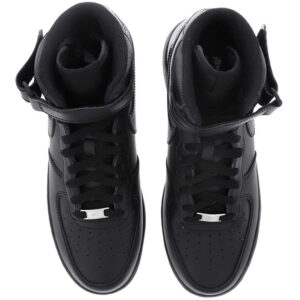 Das Modell Air Force 1 Mid ’07 ist ein Lifestyle-Sneaker in Mid-Cut-Ausführung mit Obermaterial aus Naturleder und synthetischen Materialien in Schwarzer Farbe. Die Konstruktion ist mit dem charakteristischen Knöchelriemen und Perforationen für Belüftung ausgestattet.