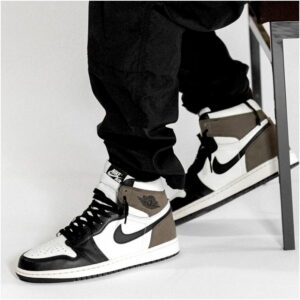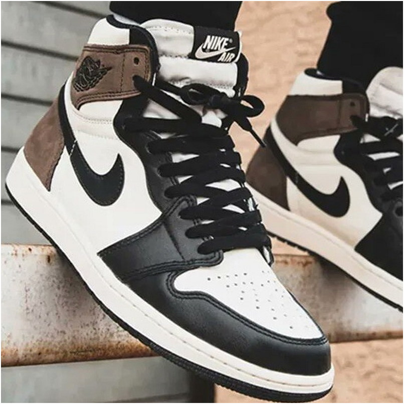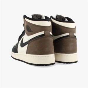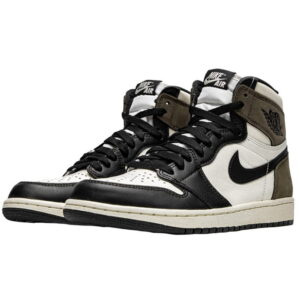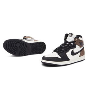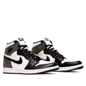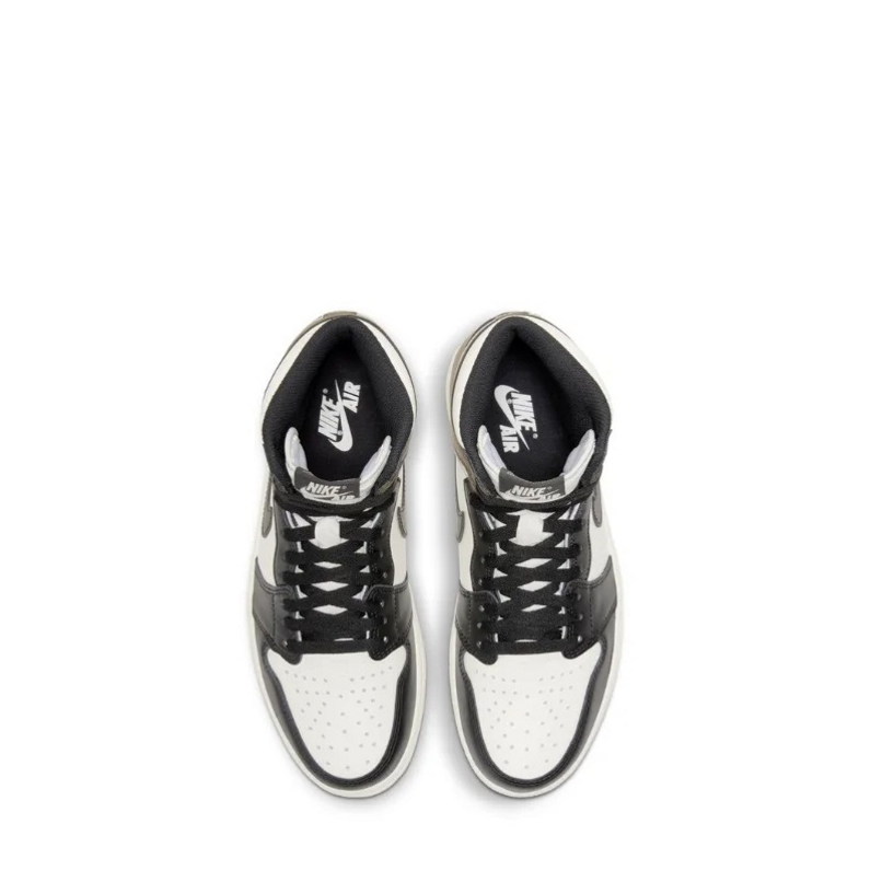Das Modell Air Jordan 1 Retro High OG ist ein High-Top-Sneaker mit Obermaterial aus Naturleder in der Farbgebung Black/White. Die Konstruktion bewahrt die klassische hohe Schaftform mit perforierter Zehenkappe sowie das charakteristische Nike Swoosh Logo und Air Jordan Wings.