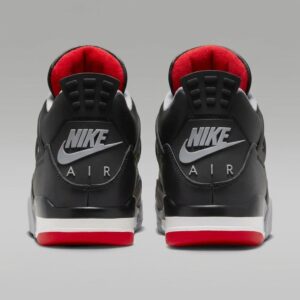 Der Air Jordan 4 „Bred Reimagined“ ist eine zeitgemäße Interpretation des klassischen Modells von 1989. Die Schuhe sind aus hochwertigem Naturleder in schwarzer Farbe gefertigt, ergänzt durch Textil-Mesh und rote Details. Die charakteristische Konstruktion mit sichtbarer Air-Dämpfung in der Mittelsohle sorgt für Komfort beim Gehen.