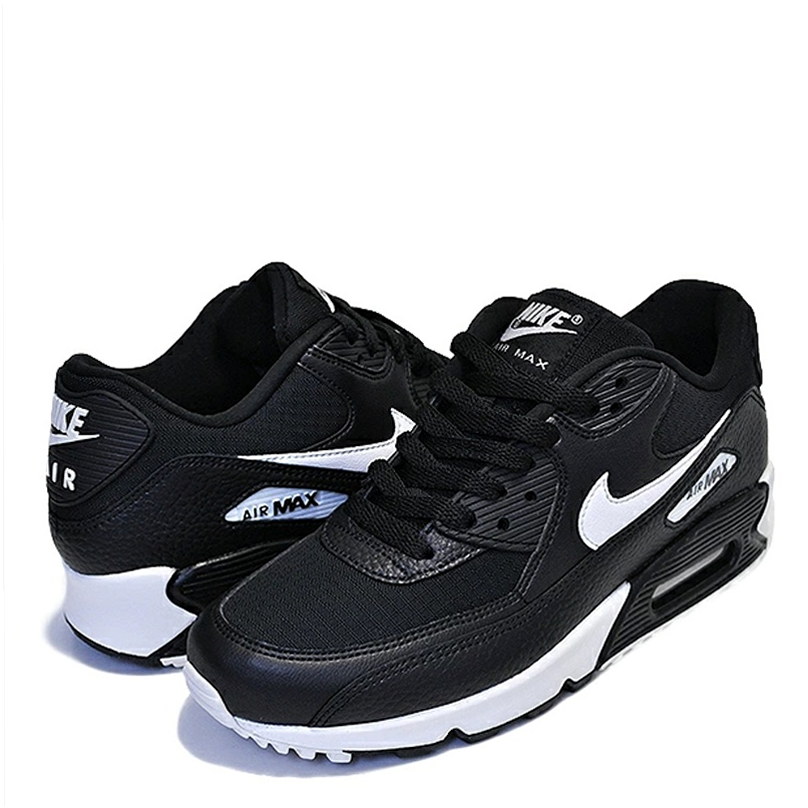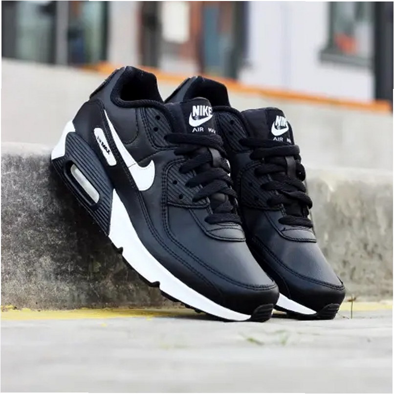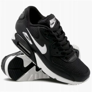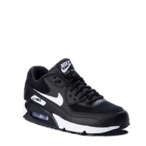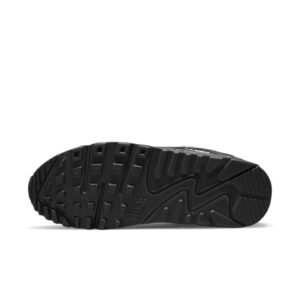Das Modell Air Max 90 ist ein Lifestyle-Sneaker mit Obermaterial aus Naturleder, Kunstmaterialien und Mesh-Gewebe in der Farbgebung Black/Red/Grey. Low-Top-Konstruktion mit kontrastierenden roten Akzenten und sportlichen Linien, charakteristisch für das Design von Tinker Hatfield aus dem Jahr 1990.