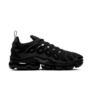 Das Modell Air VaporMax Plus ist ein Lifestyle-Sneaker mit Textilschaft, ausgestattet mit TPU-Verstärkungen im charakteristischen Design inspiriert vom Air Max Plus. Low-Top-Konstruktion vollständig in Black Farbgebung.