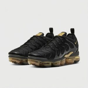 Nike Air VaporMax Plus Metallic Gold sind Sportschuhe in eleganter schwarz-goldener Farbgebung. Das Modell verbindet die moderne VaporMax Sohle mit dem klassischen Plus Design und schafft funktionales Schuhwerk für tägliche Aktivitäten. Textilmaterialien und Kunststoffelemente gewährleisten Haltbarkeit und Tragekomfort.