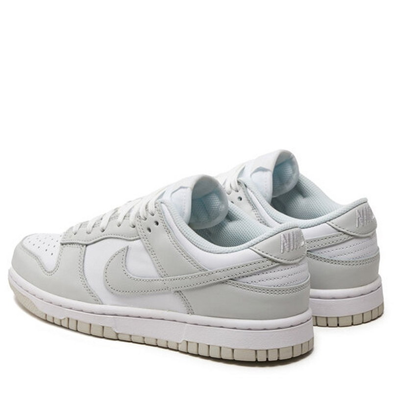 Das Modell Dunk Low ist ein Lifestyle-Sneaker mit Obermaterial aus Naturleder und Kunstleder in neutraler weiß-grauer Farbgebung. Low-Top-Konstruktion mit charakteristischem seitlichen Panel mit Swoosh-Logo.