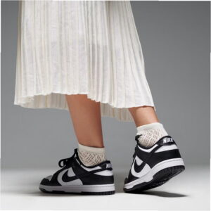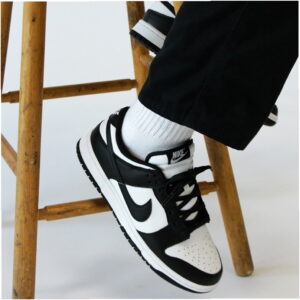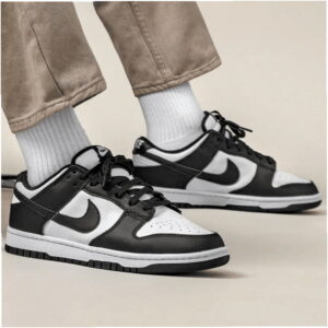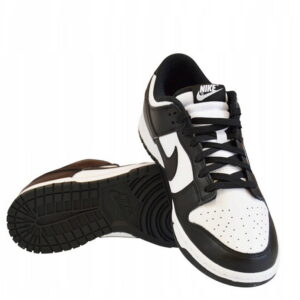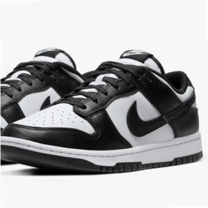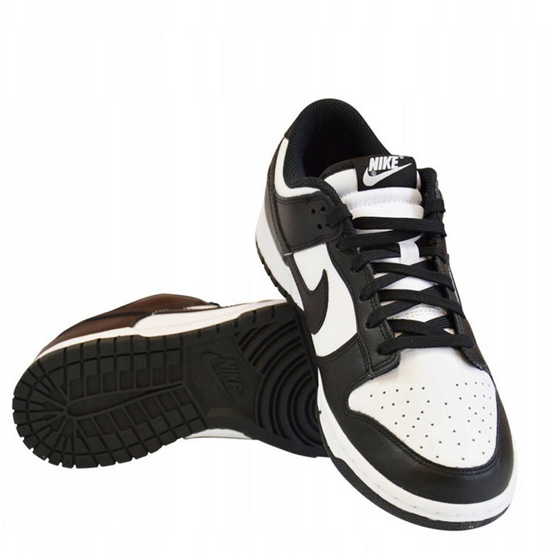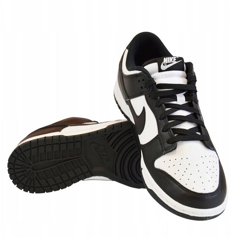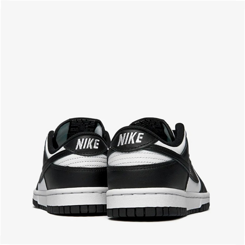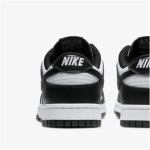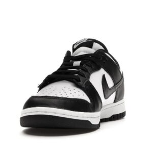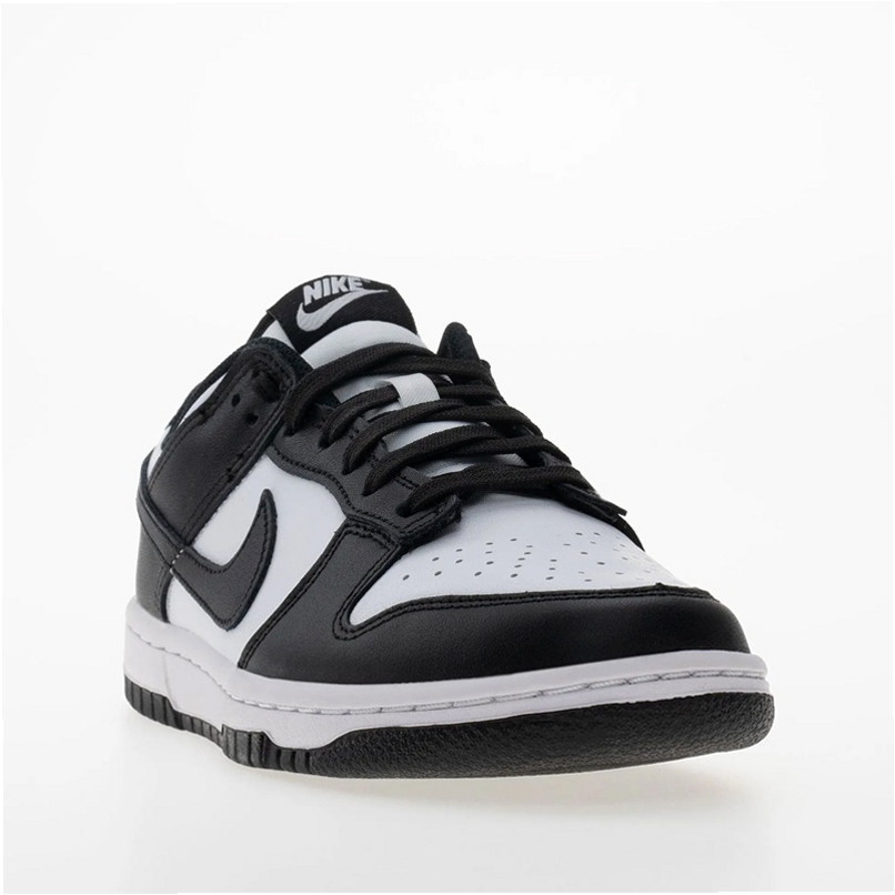 Das Modell Dunk Low Retro ist ein Lifestyle-Sneaker mit Obermaterial, das Naturleder und Synthetikleder in kontrastierender Farbgebung White/Black verbindet. Low-Top-Konstruktion mit charakteristischem großem Swoosh-Logo auf dem Seitenpanel, stammend aus dem Basketballdesign der 1980er Jahre.