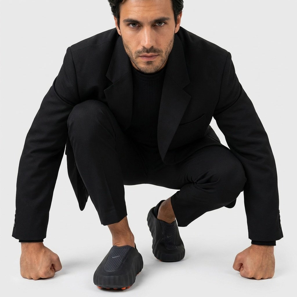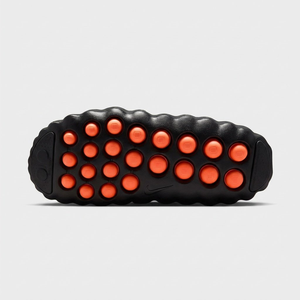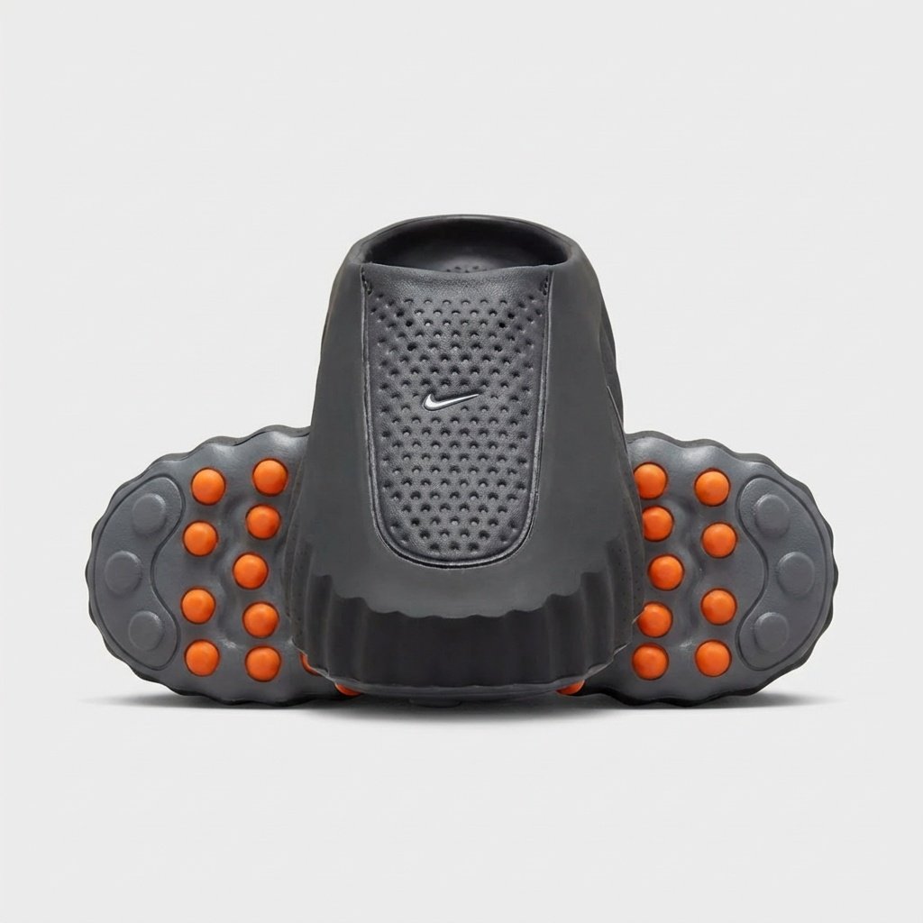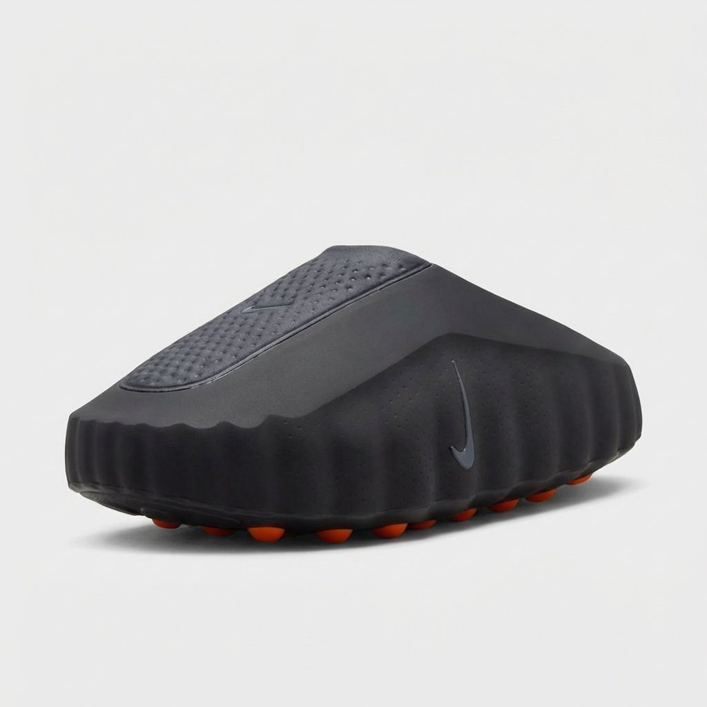 Die Pantoletten NIKE Mind 001 sind ein minimalistisches Modell in schwarzer Farbe mit verchromten Details. Gefertigt aus leichtem Synthetikschaum, der ganztägigen Komfort gewährleistet. Die Sohle mit charakteristischen orangefarbenen Noppen erhöht die Griffigkeit auf verschiedenen Oberflächen.