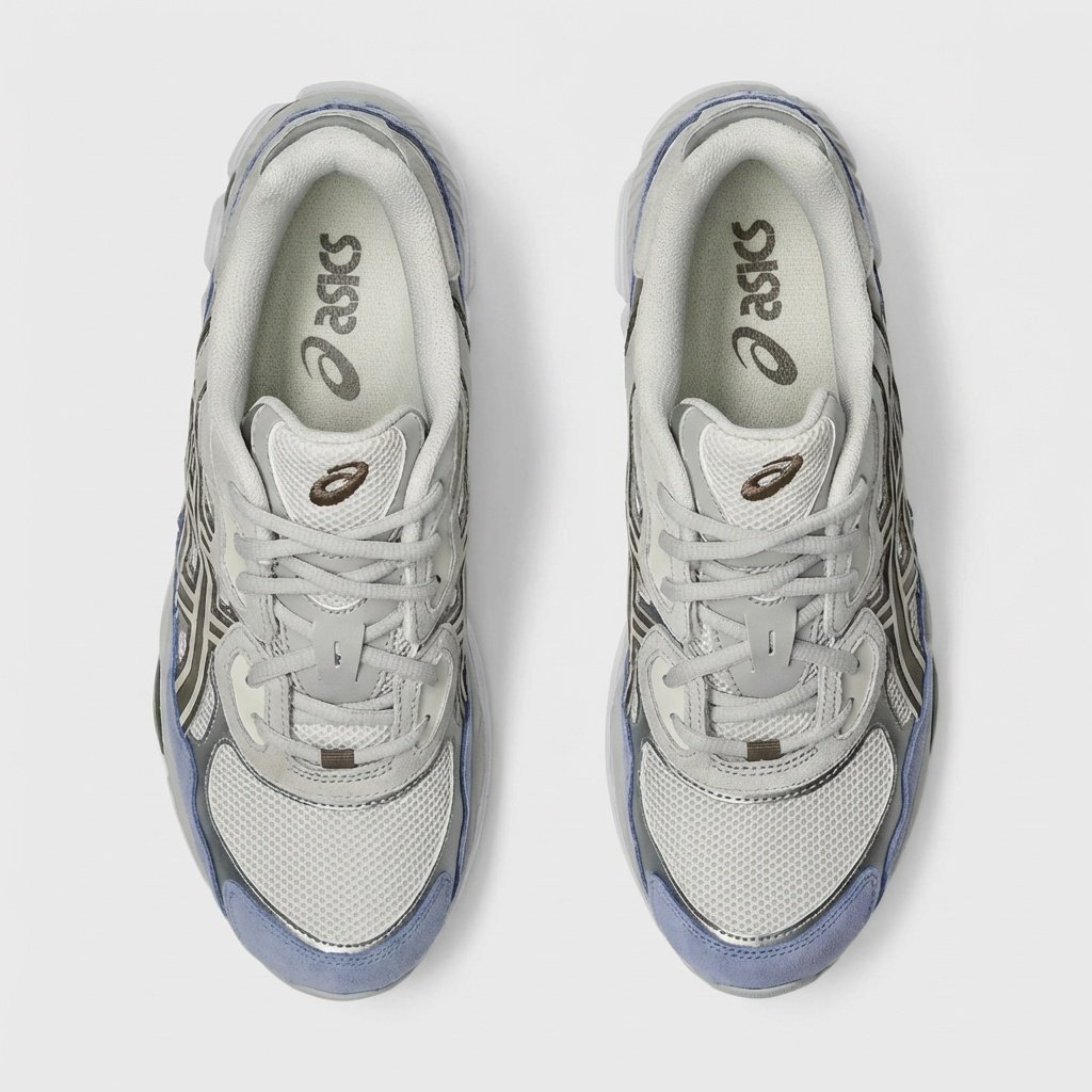 Die Sportschuhe ASICS GEL-NYC verbinden klassisches Running-Shoe-Design mit moderner Dämpfungstechnologie. Das Modell zeichnet sich durch eine Multi-Material-Konstruktion mit atmungsaktivem Mesh, Elementen aus Kunstwildleder sowie dem charakteristischen Riemensystem am Schaft aus. Die Farbstellung Cream Cloud Grey Blue bietet eine subtile Kombination aus Grautönen, Blau und cremefarbenen Akzenten.