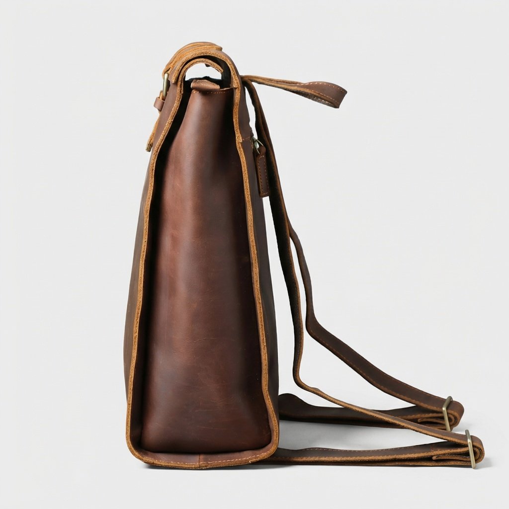 Der Lederrucksack im Vintage-Stil verbindet klassische Eleganz mit der Praktikität des täglichen Gebrauchs. Gefertigt aus echtem Leder in brauner Farbe, besitzt er eine durchdachte Konstruktion mit vielen Fächern, die den Raum organisieren. Solide Verarbeitung und verstellbare Schultergurte garantieren Komfort beim längeren Tragen.