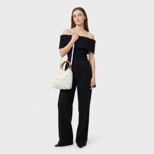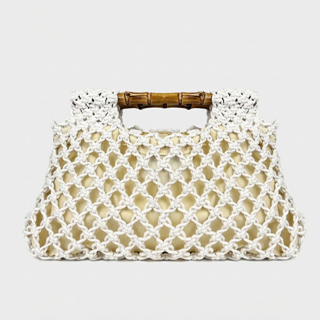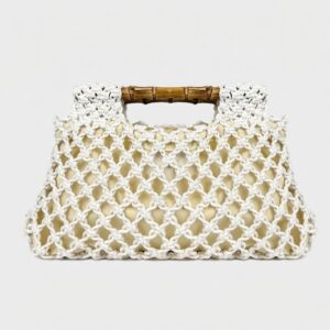 Se combina perfectamente con vestidos veraniegos, pantalones de lino y tops de algodón en colores naturales. Complemento ideal para estilismos vacacionales, paseos por la playa o encuentros urbanos en días cálidos. El asa de bambú aporta carácter exótico a todo el conjunto.