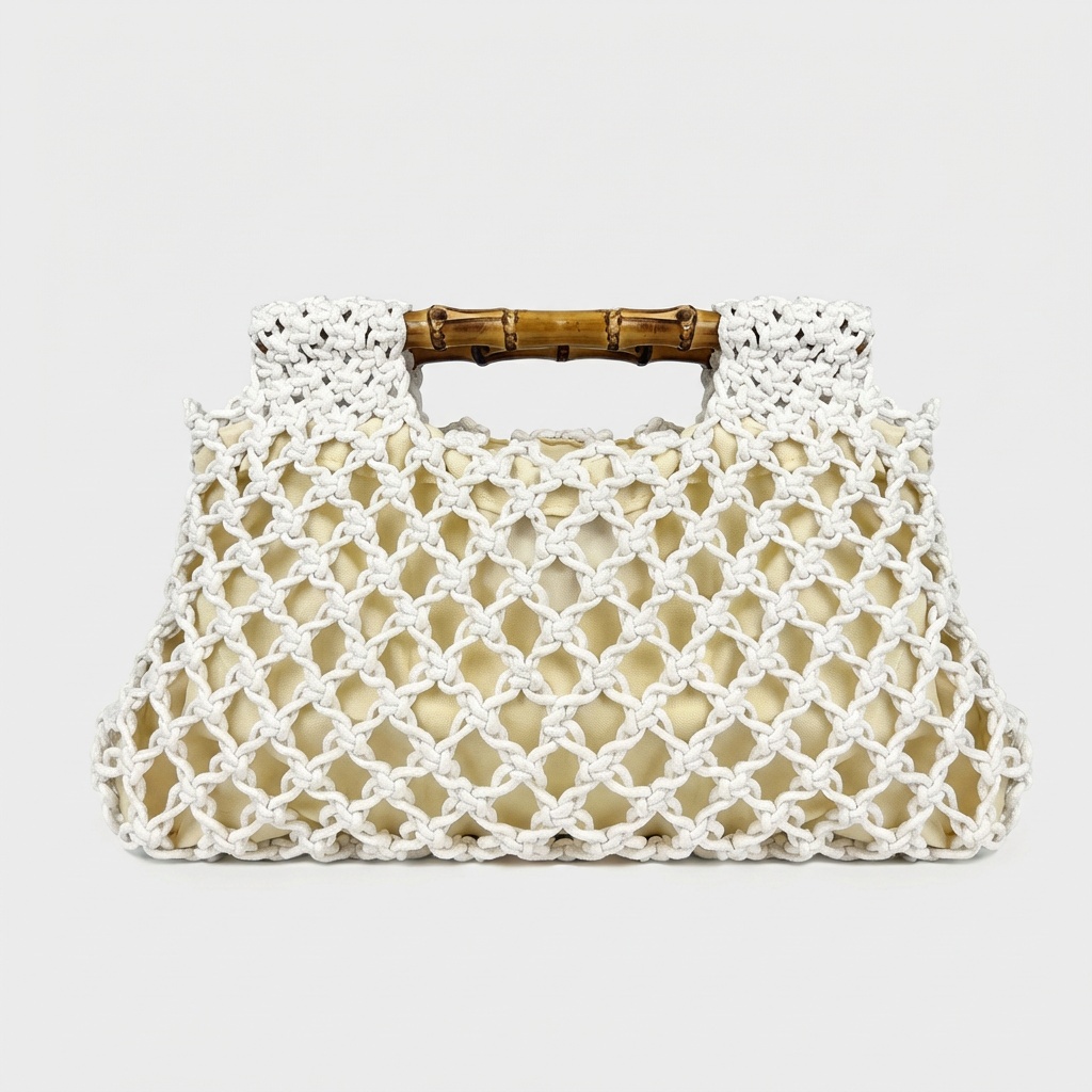 Bolso Mujer Trenzado Beige con Asa de Bambú Mujer BAG-003