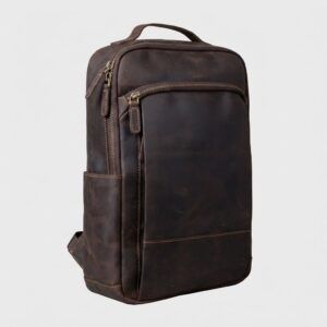 Mochila elaborada en cuero natural que combina funcionalidad con diseño vintage atemporal. Equipada con compartimento principal y bolsillos adicionales frontales, proporciona una organización conveniente de los objetos. Las correas ajustables para los hombros y los cierres sólidos con cremallera garantizan comodidad de uso.
