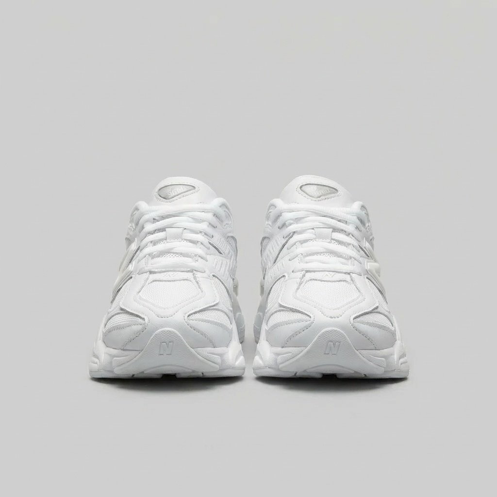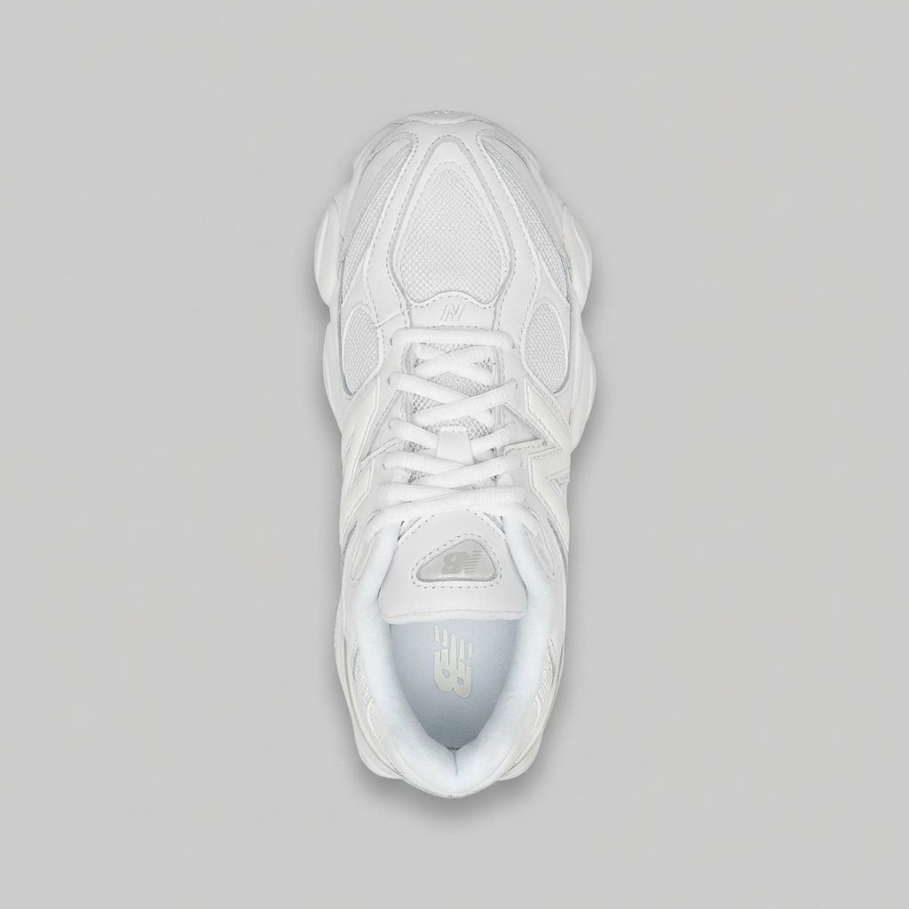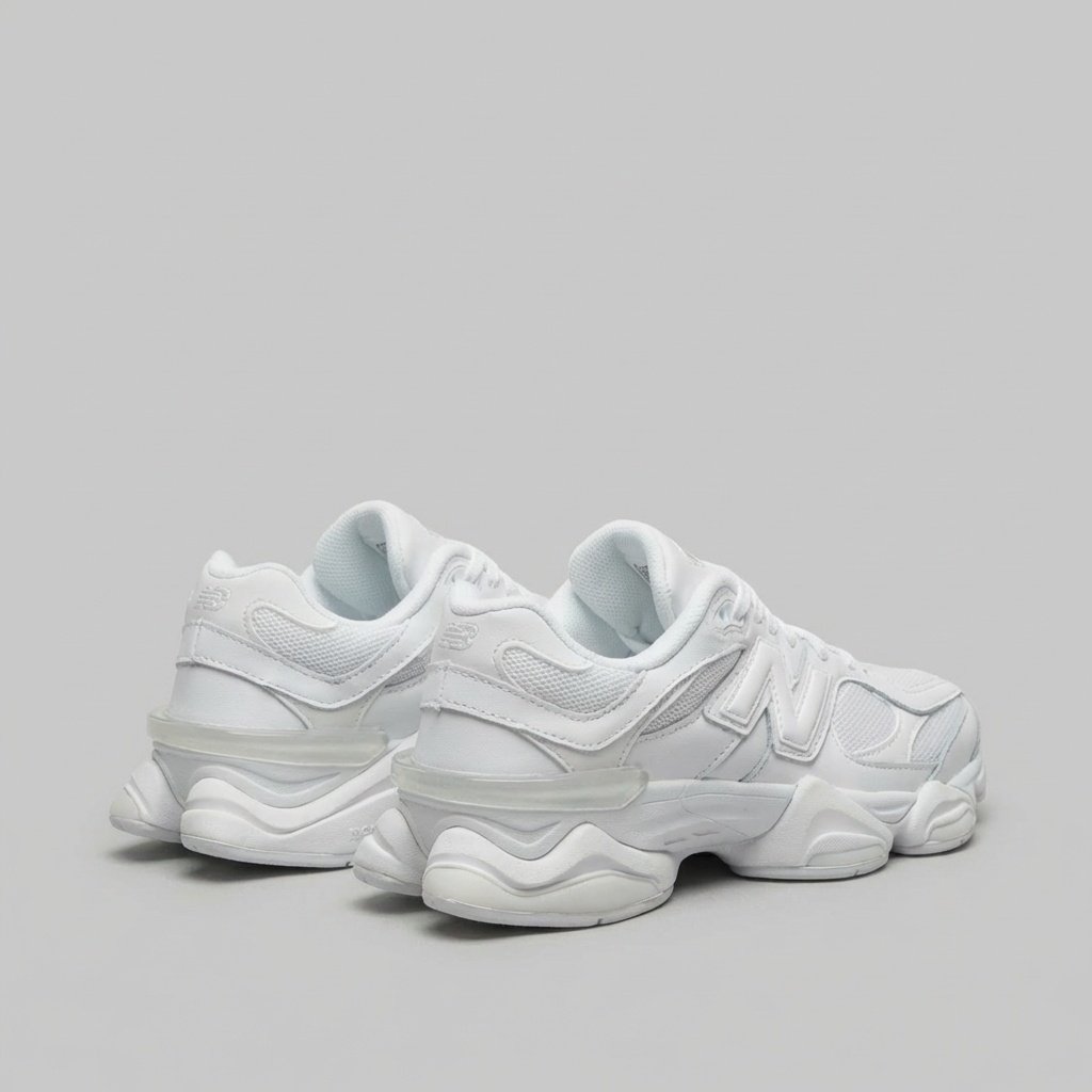 Sneakers New Balance U9060NRJ Triple White en coloración completamente blanca. Diseño chunky inspirado en la estética retro de los años 2000. Elaboradas con una combinación de piel ecológica y materiales textiles. Suela masiva con forma característica.
