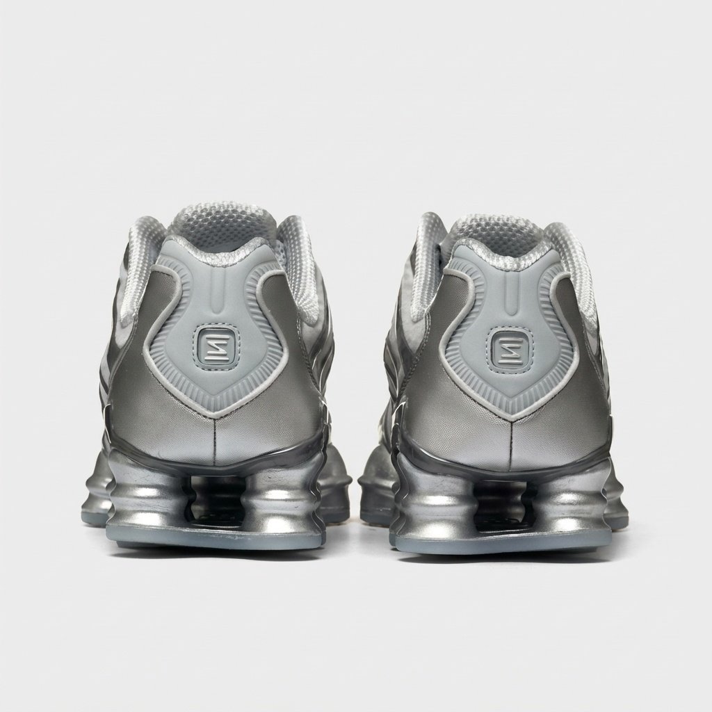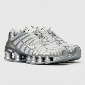 Las Nike Shox TL Chrome Pure Platinum son zapatillas deportivas con diseño futurista y tecnología avanzada de amortiguación. Las características columnas Shox en la entresuela proporcionan una absorción eficaz de impactos en cada paso. La coloración metálica otorga al modelo un carácter moderno.