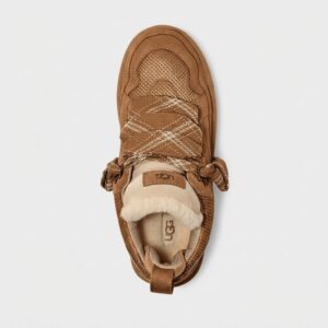 Los zapatos UGG Lowmel son la combinación de una silueta deportiva con el acolchado cálido de la marca. Confeccionados en piel de ante en tono chestnut, complementados con inserciones textiles para mejor ventilación. La suela característica con dibujo estriado garantiza estabilidad en diferentes superficies.