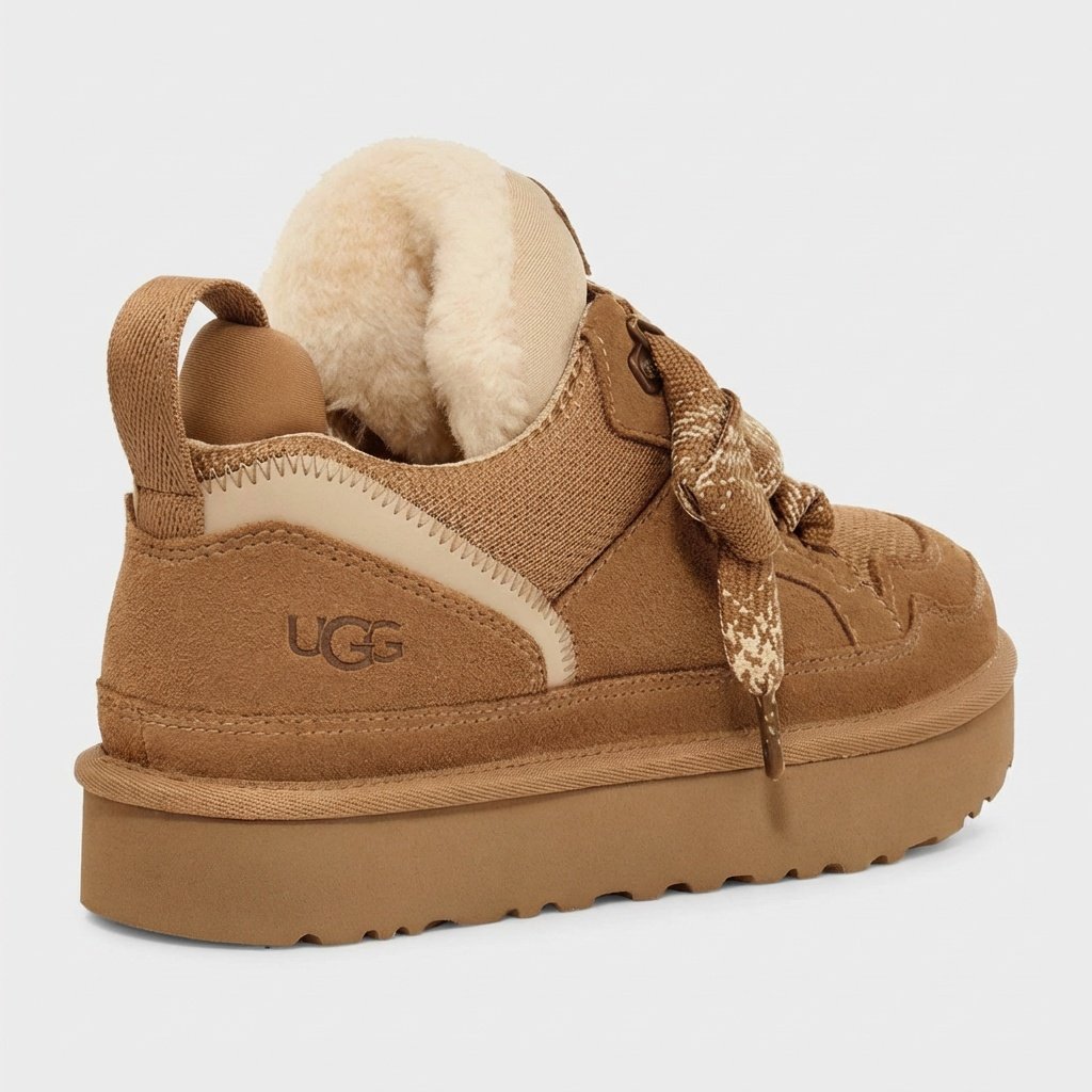 Los zapatos femeninos UGG Lowmel en color chestnut combinan ante clásico con elementos textiles modernos. La plataforma proporciona altura adicional, y el acolchado garantiza comodidad en días más fríos. El modelo se distingue por sus cordones característicos y suela con dibujo antideslizante.