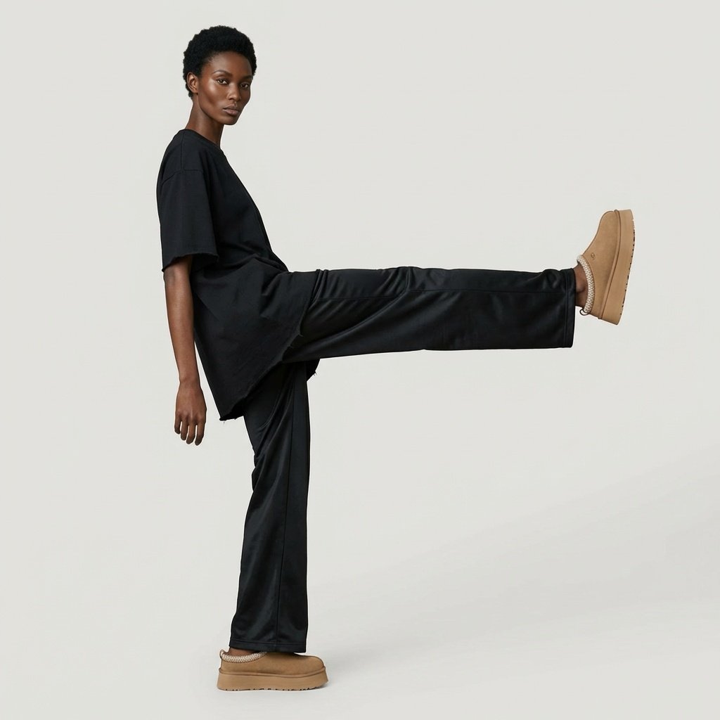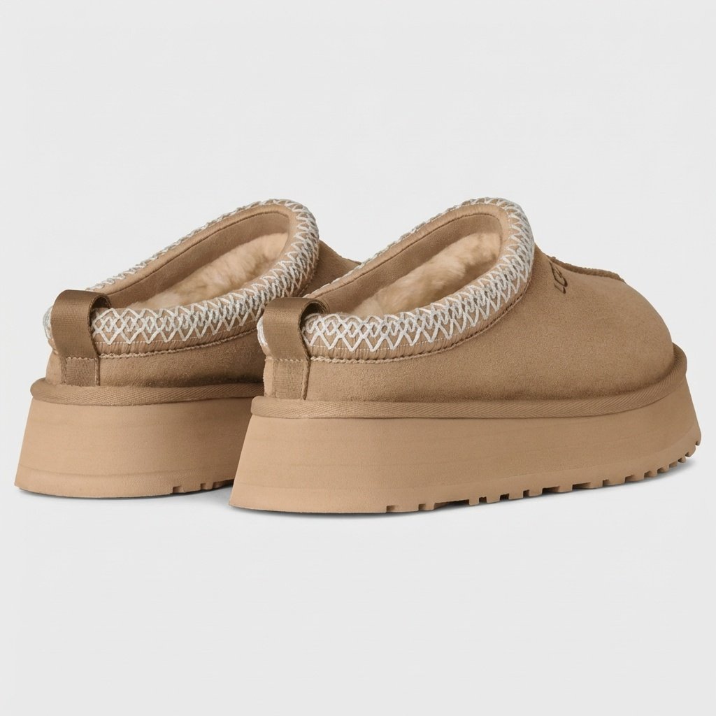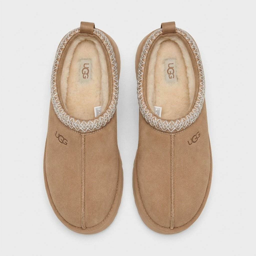 Las zapatillas UGG Tazz combinan la comodidad del hogar con el estilo urbano gracias a la suela gruesa de EVA y la pala de ante. La lana merina natural asegura termorregulación y suavidad en cada paso. El tono arena Sand combina con estilismos casuales para el día a día.