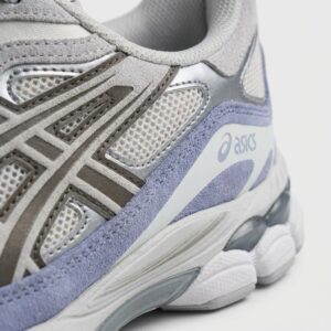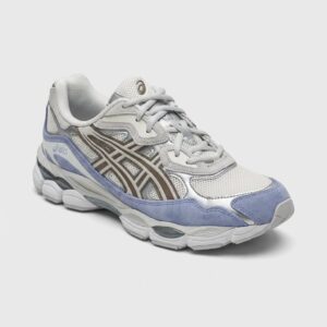 Las zapatillas deportivas ASICS GEL-NYC son una combinación de diseño clásico de running shoes con moderna tecnología de amortiguación. El modelo se caracteriza por una construcción multimaterial con malla transpirable, elementos de ante sintético y el característico sistema de correas en la parte superior. La coloración Cream Cloud Grey Blue ofrece una sutil combinación de gris, azul y acentos cremosos.