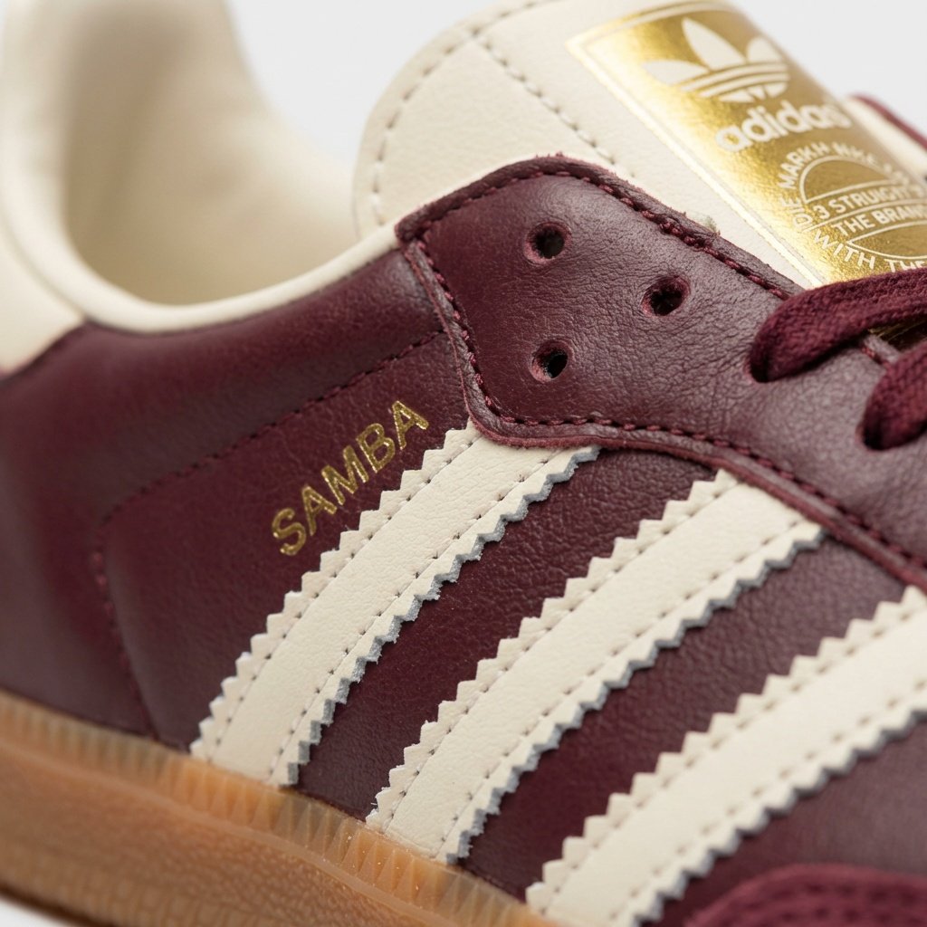 La SAMBA OG se marie parfaitement avec les jeans et les tenues urbaines décontractées. Elle s’accorde avec les chinos, joggings et shorts, créant des ensembles polyvalents pour le quotidien. La couleur bordeaux s’harmonise avec les teintes neutres : beige, gris et noir.