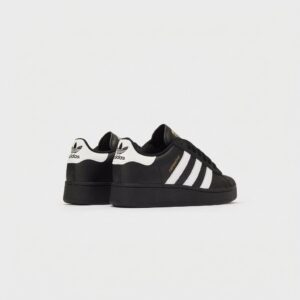 L’Adidas Superstar XLG est une interprétation contemporaine du modèle légendaire des années 70. Fabriquées en cuir naturel et matières textiles en coloris noir avec les trois bandes blanches contrastantes. Les détails dorés sur la languette et le talon ajoutent de l’élégance à l’ensemble de la construction.