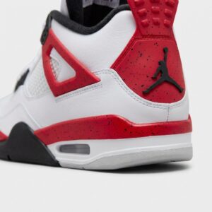 La Nike Air Jordan 4 Retro en version Red Cement marque le retour du coloris classique de 1989. Le modèle associe le cuir blanc aux éléments rouges caractéristiques sur le talon et la semelle intermédiaire. Les chaussures sont équipées du système d’amortissement Air-Sole et du mesh caractéristique à l’avant-pied.