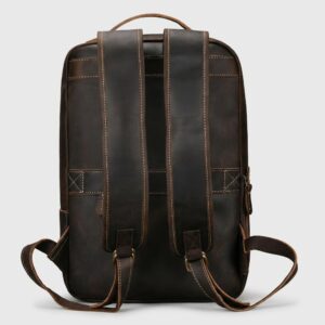 Sac à dos alliant artisanat traditionnel et praticité d’usage quotidien. Confectionné en cuir naturel dans une couleur marron classique, orné de surpiqûres contrastantes. Le modèle se caractérise par un agencement réfléchi des poches et compartiments.