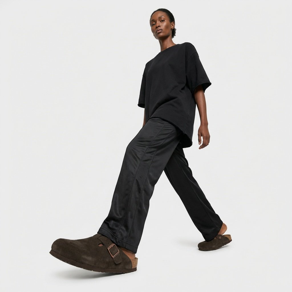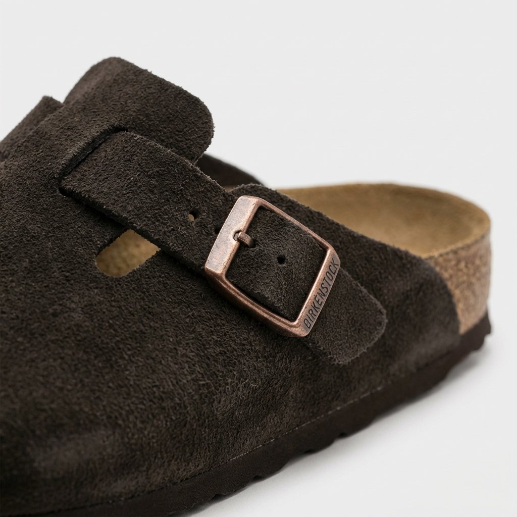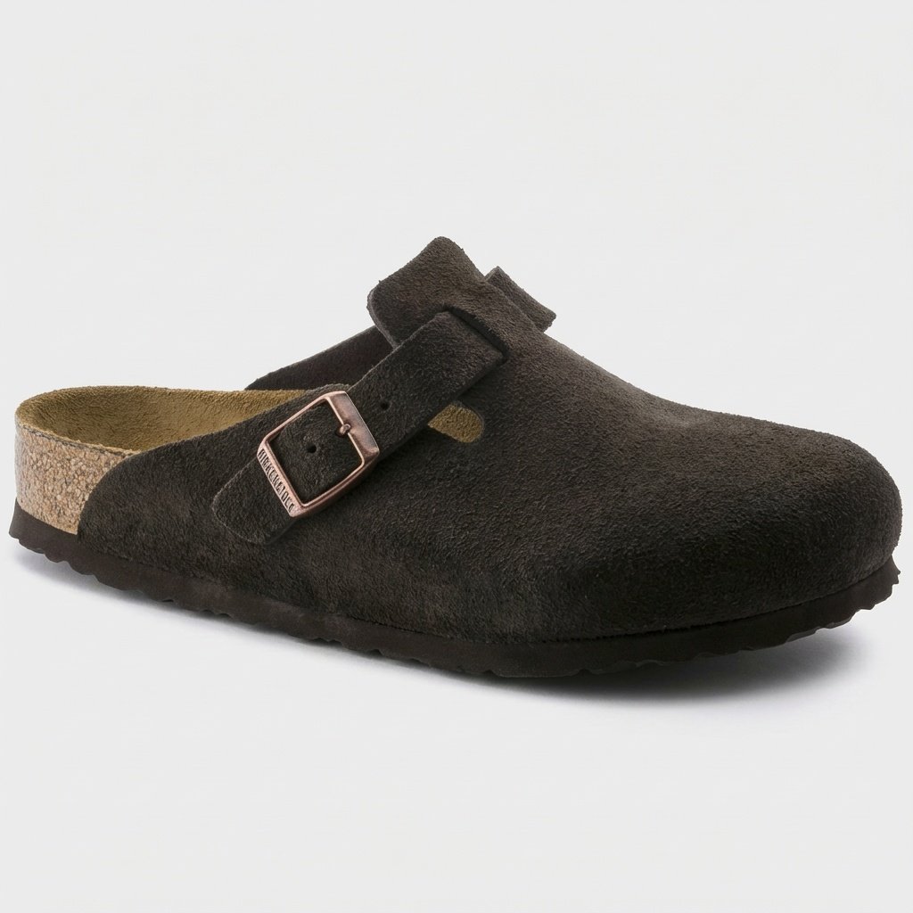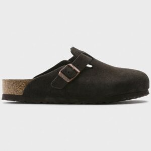 Le ciabatte Boston SFB uniscono comfort e design minimalista. Realizzate in pelle scamosciata di alta qualità nella tonalità mocha, sono dotate della caratteristica fibbia con finitura metallica color rame. La suola anatomica in sughero naturale assicura il giusto sostegno all’arco plantare.