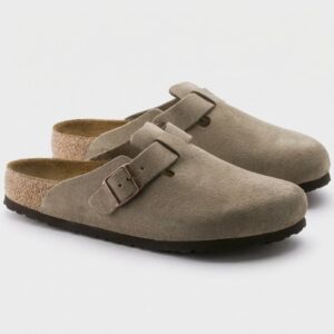 Le ciabatte Birkenstock Boston SFB nella tonalità taupe sono un modello chiuso realizzato in pelle scamosciata di alta qualità. Il plantare anatomico in sughero naturale si adatta alla forma del piede, garantendo comfort per tutto il giorno. La fibbia regolabile permette una regolazione precisa della larghezza.