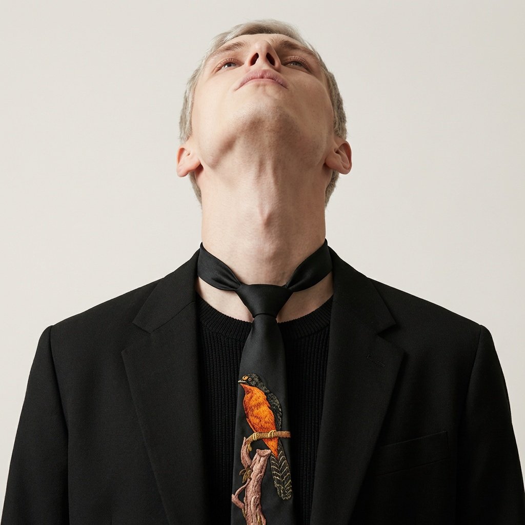La cravatta si adatta perfettamente agli outfit da ufficio come accento artistico discreto abbinato alla camicia classica. Scelta eccellente per eventi serali dove i dettagli fanno la differenza. Il design unisex permette di indossarla sia in modo tradizionale che come statement piece negli styling femminili con camicia oversize.