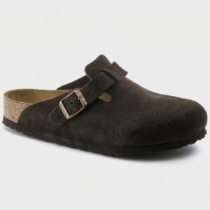 Boston SFB instappers combineren comfort met minimalistisch design. Gemaakt van hoogwaardige suède in mocha tint, voorzien van karakteristieke gesp met metalen afwerking in koperkleur. Anatomische zool van natuurlijk kurk biedt juiste ondersteuning van de voetboog.