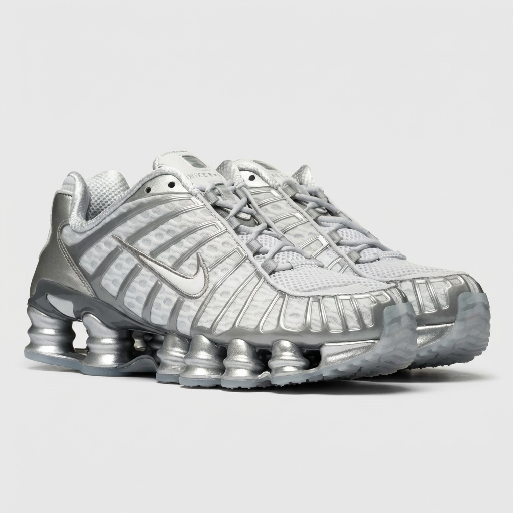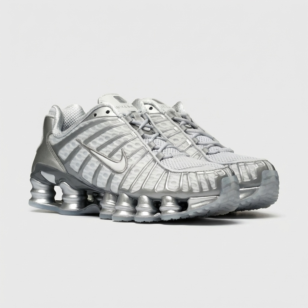 Nike Shox TL Chrome Pure Platinum zijn sportschoenen met futuristisch design en geavanceerde dempingstechnologie. De karakteristieke Shox-kolommen in de middenzool zorgen voor effectieve schokdemping bij elke stap. De metallieke kleurstelling geeft het model een modern karakter.