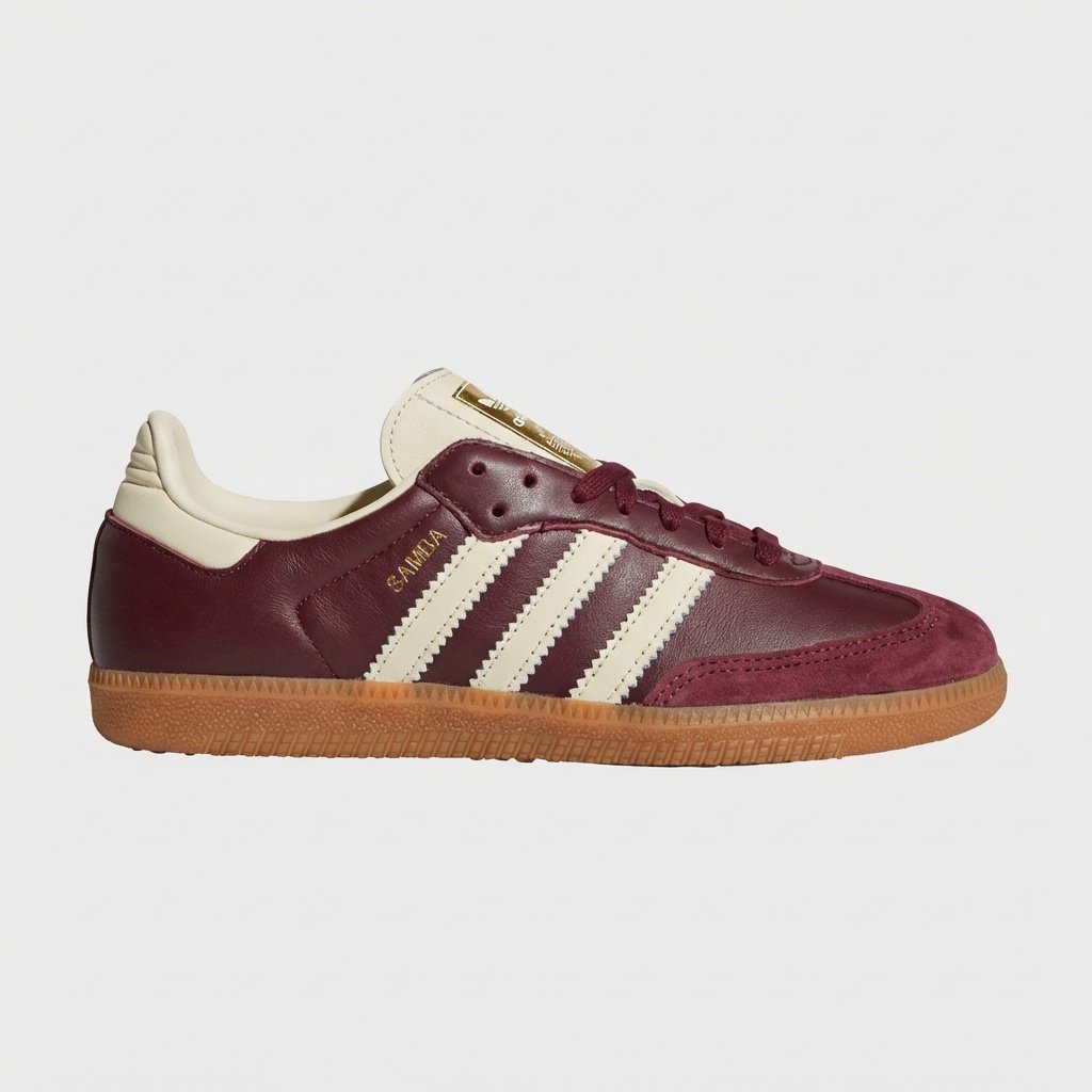 SAMBA OG combineert uitstekend met jeans en casual stedelijke outfits. Past bij chino’s, joggers en shorts, waardoor veelzijdige dagelijkse combinaties ontstaan. Bordeaux kleur harmonieert met neutrale tinten: beige, grijs en zwart.