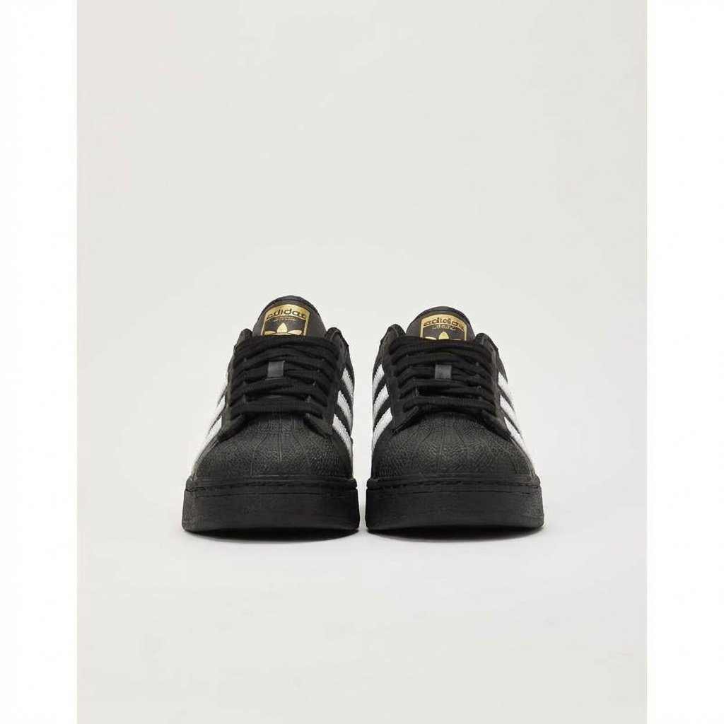 Adidas Superstar XLG is een hedendaagse interpretatie van het legendarische model uit de jaren 70. Gemaakt van natuurlijk leer en textiele materialen in zwarte kleurstelling met contrasterende witte drie strepen. Gouden details op de tong en hiel voegen elegantie toe aan de hele constructie.