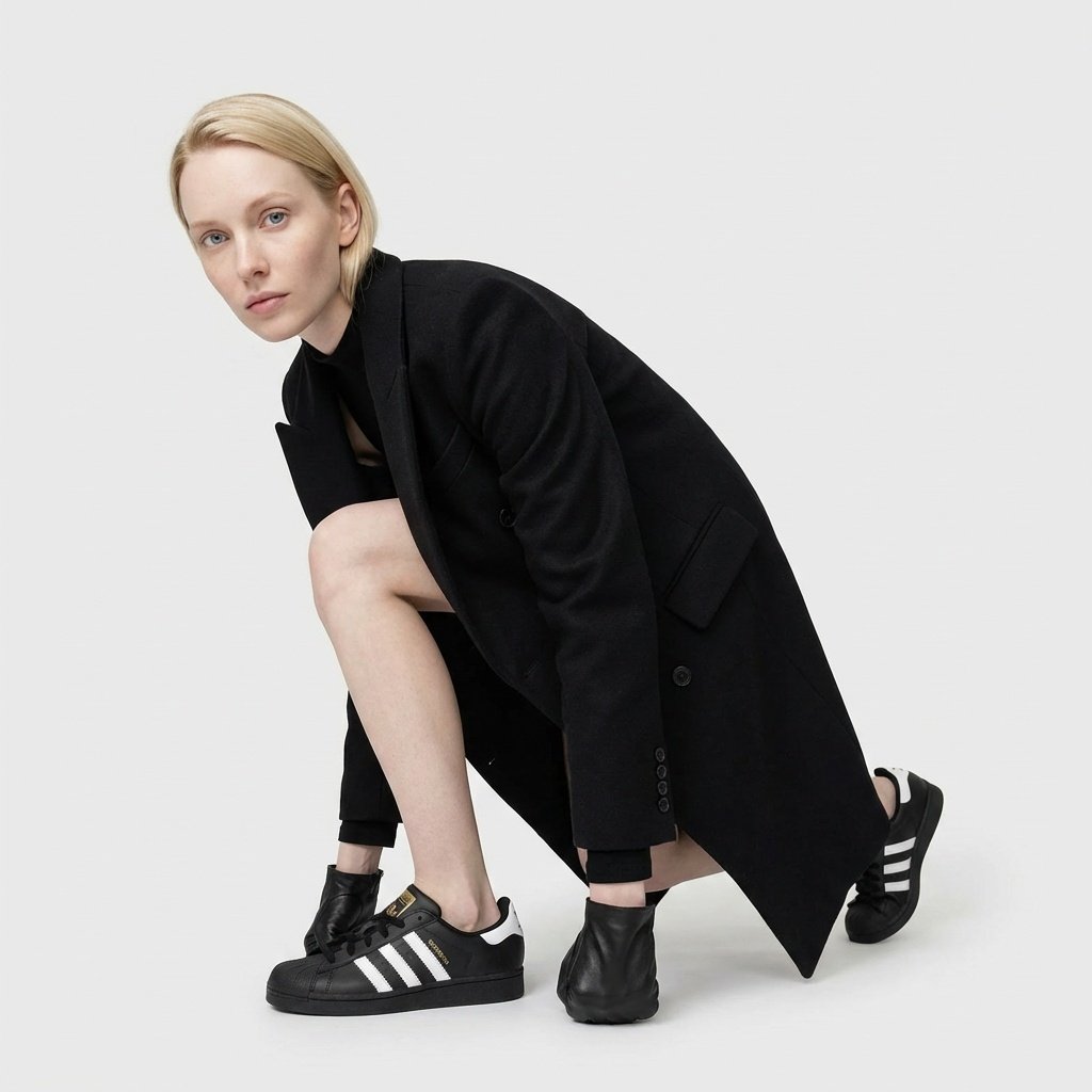 Sneakers werken goed in dagelijkse outfits met jeans, sportieve trainingspakken of mini rokjes. Zwarte kleurstelling met witte strepen past bij monochromatische ensembles. Het universele karakter van het model maakt het mogelijk om te dragen op het werk, op de universiteit of tijdens weekendbijeenkomsten.