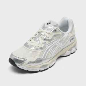 ASICS GEL-NYC zijn sportschoenen met een kenmerkend ontwerp geïnspireerd door de stedelijke levensstijl. Het bovenwerk is gemaakt van een combinatie van textiel en synthetische materialen in crème-zilver kleurstelling met witte accenten. Het model is uitgerust met een geavanceerd GEL-dempingssysteem in de hiel en middenvoetstuk.