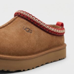 De UGG Tazz schoenen in chestnut tint combineren klassiek design met praktisch dagelijks gebruik. Gemaakt van hoogwaardige suède met natuurlijke wollen voering, bieden ze warmte en comfort. De kenmerkende plateauzool van 3 cm hoogte en jacquard patroon op de rand geven het model een herkenbaar karakter.