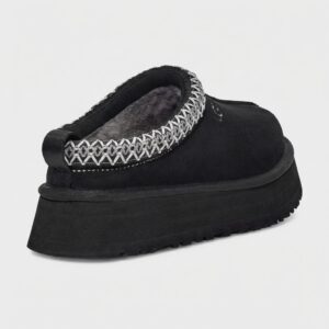 UGG Tazz pantoffels combineren huiselijk comfort met stedelijke stijl dankzij het kenmerkende 4 cm hoge platform. Gemaakt van zachte zwarte suède, afgewerkt met natuurlijke schapenwol voor thermoregulatie. Het decoratieve patroon op de schacht geeft het model het karakteristieke UGG-uiterlijk.