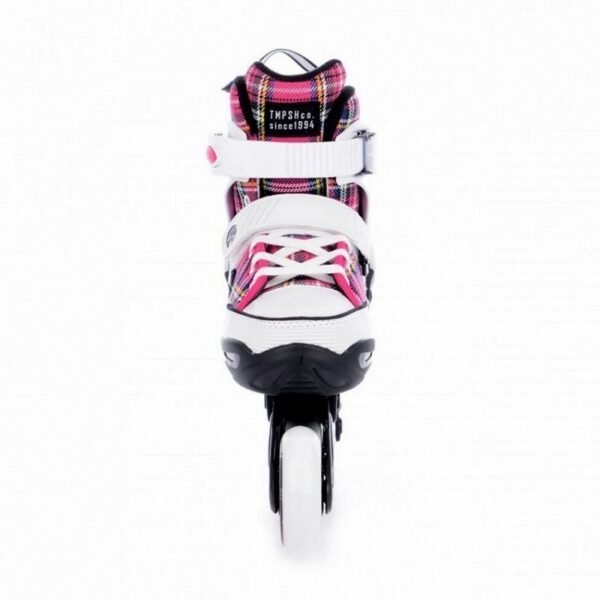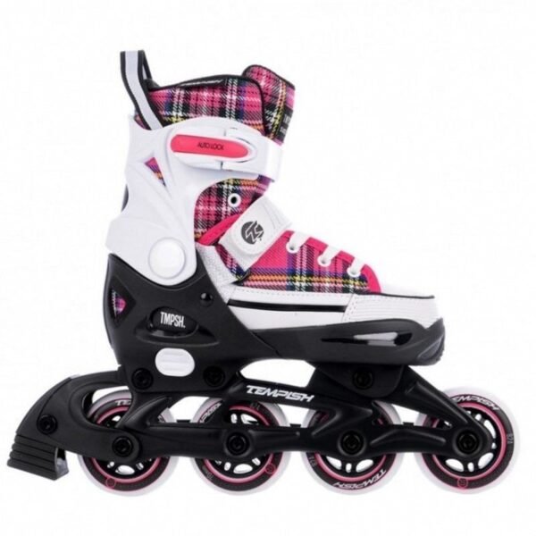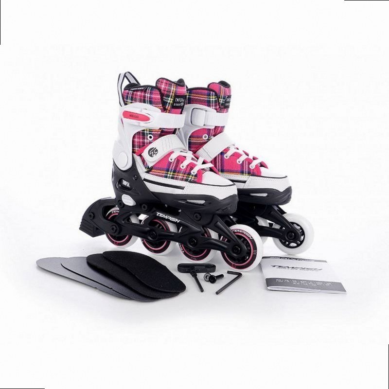 Properties: Adjustable Rollers Tempish Rebel T Girl High -quality Adjustable children’s rollers designed for recreational riding for beginners and advanced roller skates. The model has a simple and convenient enlargement system using a button on the side of the skeleton, thanks to which the rollers can be set in 4 sizes. Technical parameters Purpose recreational and fitness (conditioning), medium and heavy load, for beginners and advanced users, the STOP Al, 2 parts, pressed 3D structure. Circle size size 29-32: wheels 64mm size 33-36: wheels 70mm size 37-40: wheels 72mm size 40-43: wheels 76mm hardness wheels 82a bearing 608, ABEC 7 ABEC binding system laces type | A shoe shell resistant to damage, PP/Nylon, 2-piece, soft liner (internal sock) stiffened nylon/canvas, anatomical, reinforced with PVC elements. Adjustable size. Brake in the set upper clamp clamp 45 degrees Velcro weight limit 60 kg