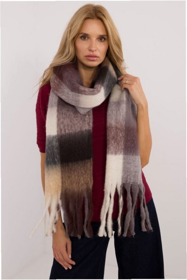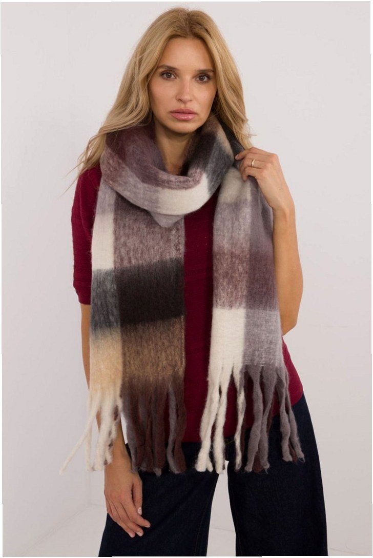 This elegant scarf measures 220 cm in length and is made from polyester in a classic check pattern, making it ideal for cooler days. Crafted from high-quality material, it offers warmth and comfort, while decorative fringes add a stylish touch. The scarf perfectly combines functionality with elegance, making it an excellent accessory for various winter outfits. Its versatile design ensures it complements many styles effortlessly.