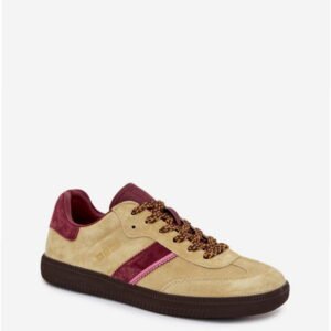 Model SS274680 HI-POLY SYSTEM to damskie sneakersy niskiego profilu z naturalnej skóry zamszowej w kolorze limonkowym. Konstrukcja typu low-top łączy klasyczny krój z nowoczesnym systemem amortyzacji. Cholewka wykonana jest z miękkiego zamszu o strukturze zwiększającej wentylację. Wnętrze wykończone ekoskórą i pianką wspiera komfort termiczny i ogranicza ryzyko otarć. Kluczowym elementem konstrukcji jest wkładka HI-POLY SYSTEM, opracowana z materiałów pochodzących z recyklingu. Charakteryzuje się wysoką elastycznością, odpornością na odkształcenia i właściwościami odprowadzania wilgoci. Podeszwa środkowa o wysokości 2 cm wykonana jest z lekkiej pianki, która zapewnia amortyzację w trakcie chodzenia. Zewnętrzna warstwa podeszwy z gumy syntetycznej oferuje przyczepność i odporność na ścieranie. Tradycyjne sznurowanie umożliwia stabilne dopasowanie. Model przeznaczony jest do codziennego użytkowania miejskiego.