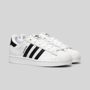 Sneakersy ADIDAS Superstar II to kontynuacja legendarnego modelu, który od dziesięcioleci definiuje styl miejski. Biała skórzana cholewka uzupełniona charakterystycznymi czarnymi trzema paskami tworzy rozpoznawalny design. Kultowa gumowa skorupa na przodzie buta zapewnia dodatkową ochronę i nadaje modelowi autentyczny charakter.