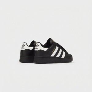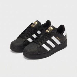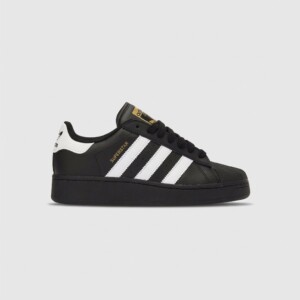 Adidas Superstar XLG to współczesna interpretacja legendarnego modelu z lat 70. Wykonane ze skóry naturalnej i materiałów tekstylnych w czarnej kolorystyce z kontrastowymi białymi trzema paskami. Złote detale na języku i pięcie dodają elegancji całej konstrukcji.